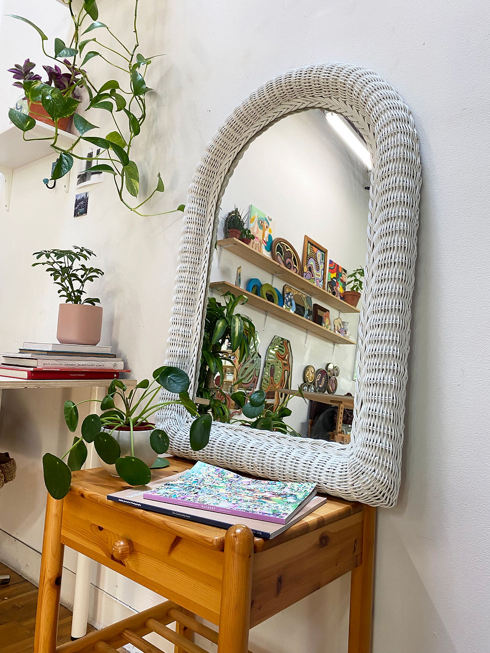 Scroll through our curated selection of mirrors (all thrifted and/or second hand), and choose one for your custom doodle. Once you have purchased your mirror, please head over to our "Commission a Piece" form to specify how you'd like it painted.